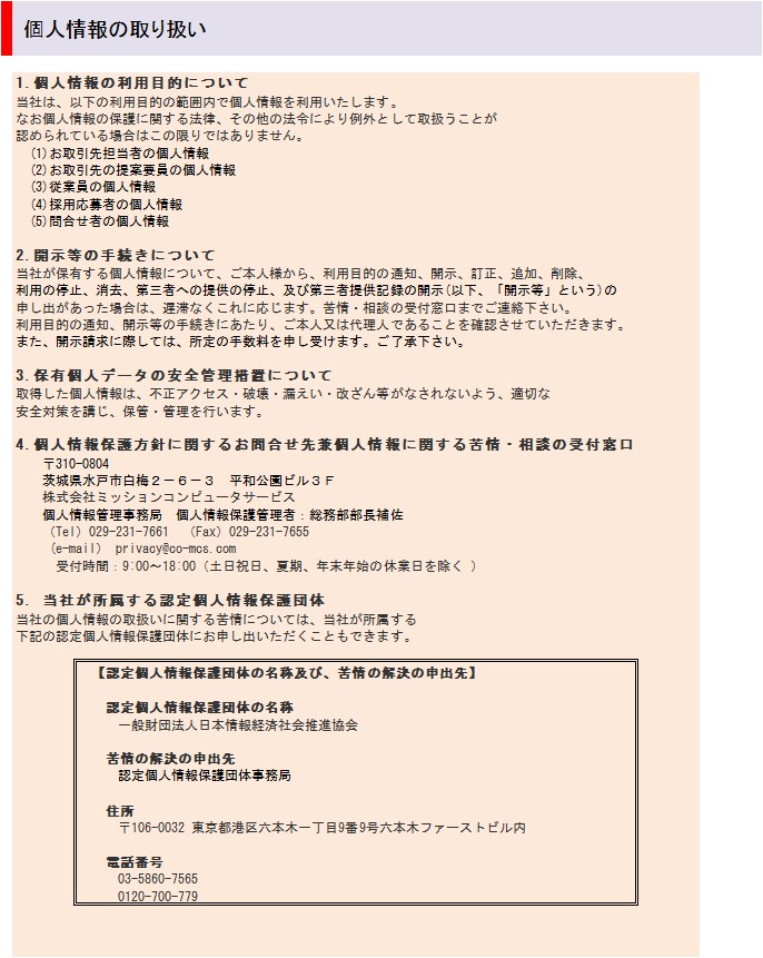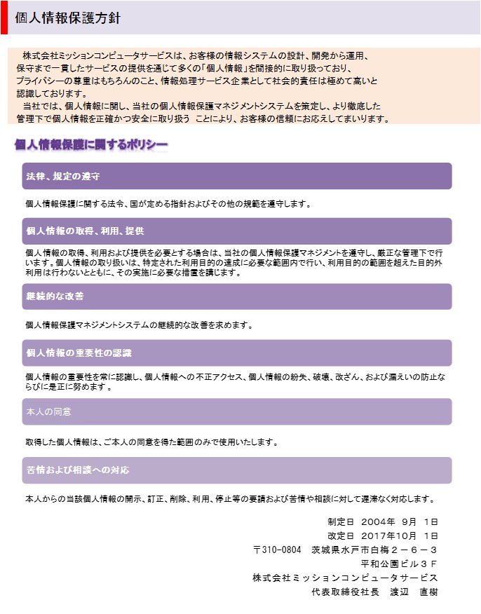 当社では、個人情報に関し、当社の個人情報保護マネジメントシステムを策定し、より徹底した管理下で